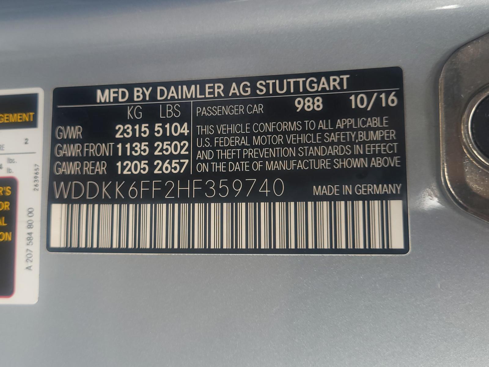 Kind: MERCEDES E-CLASS 17 207 Type (Coupe and Convertible), w/o surround view; w/blind spot alert, w/power folding, R.