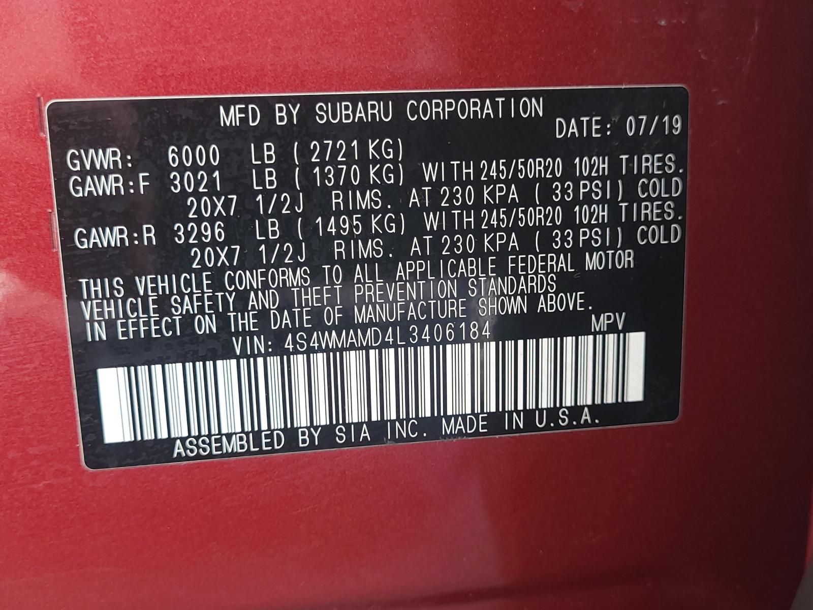 VIN: 4S4WMAMD4L3406184
