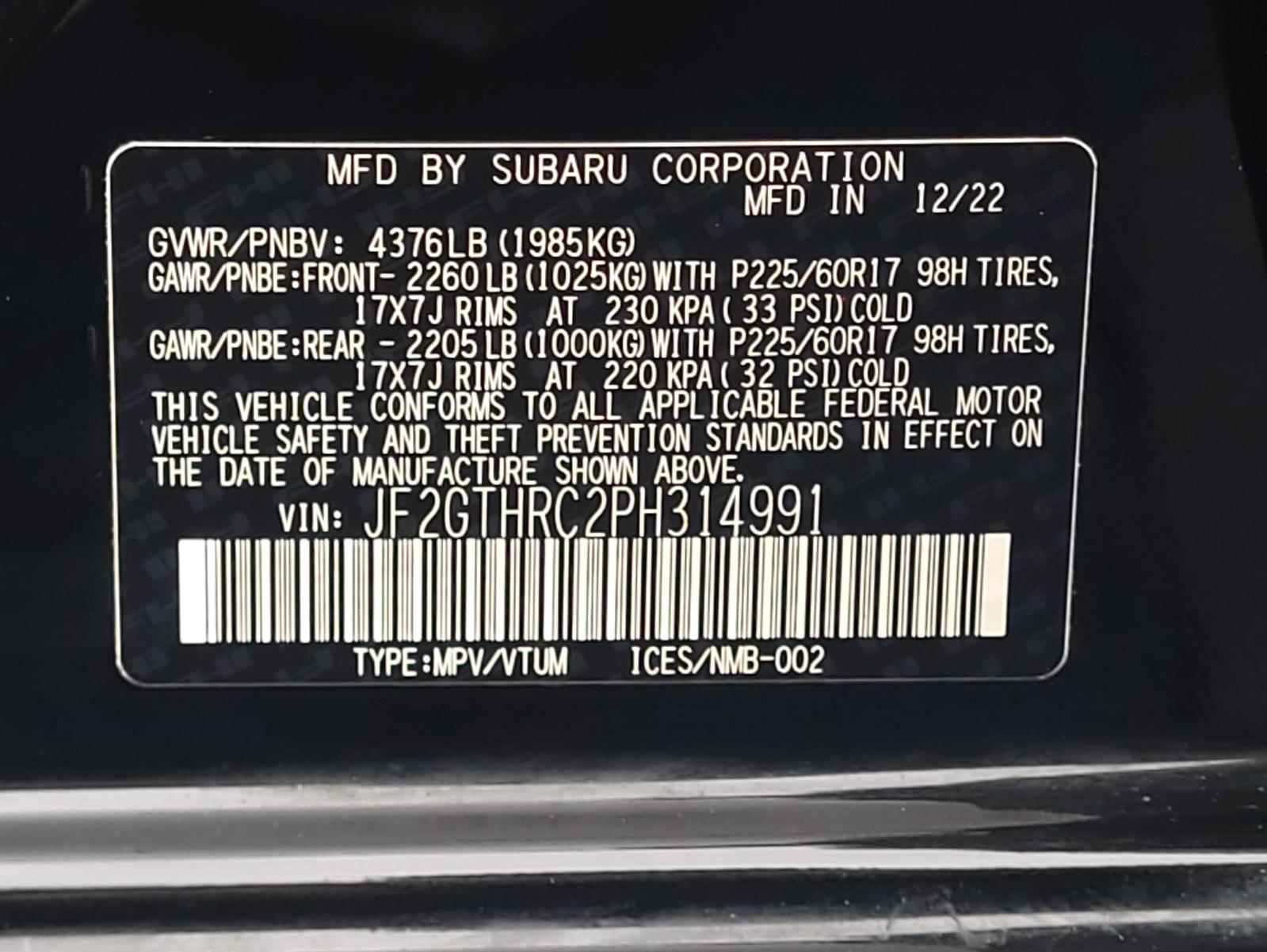 Kind: XV CROSSTREK 23 w/o off road appearance package; R.
