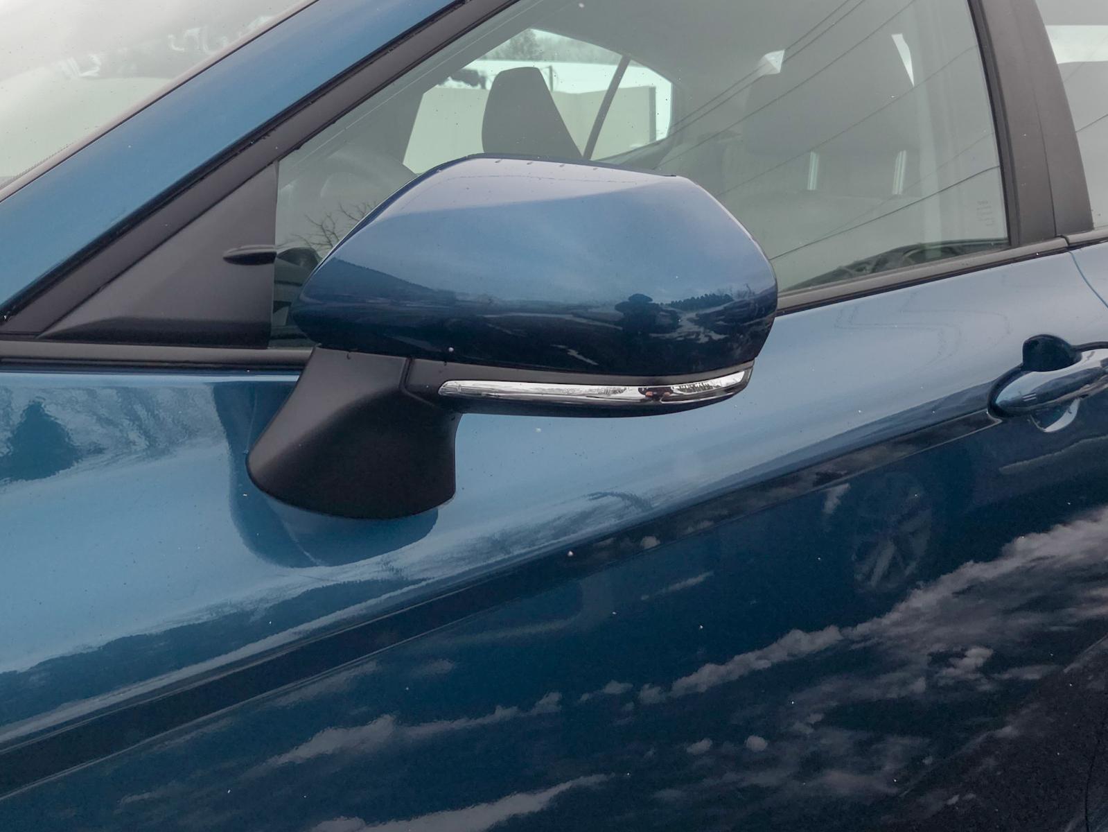 Body part that mounts on the outside of the front door to provide a view of what is behind the vehicle.
