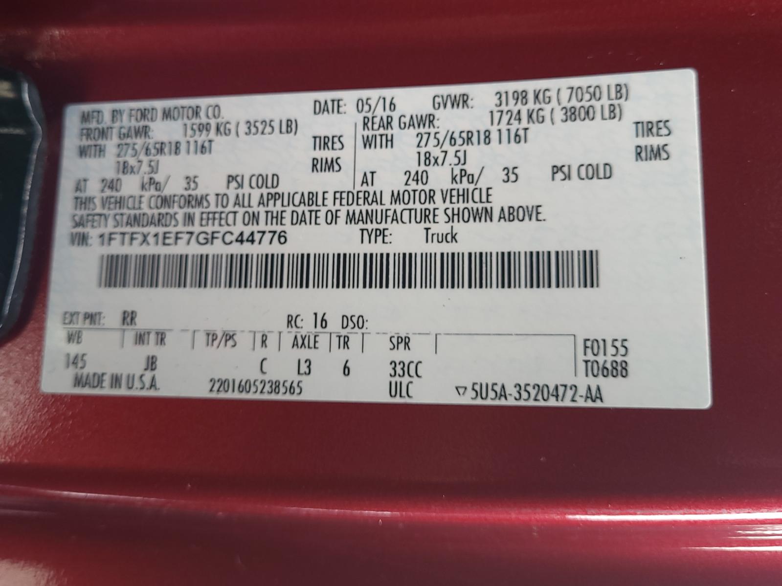 Kind: FORD F150 PICKUP 16-20 Extended Cab, power window, privacy tint glass, L.